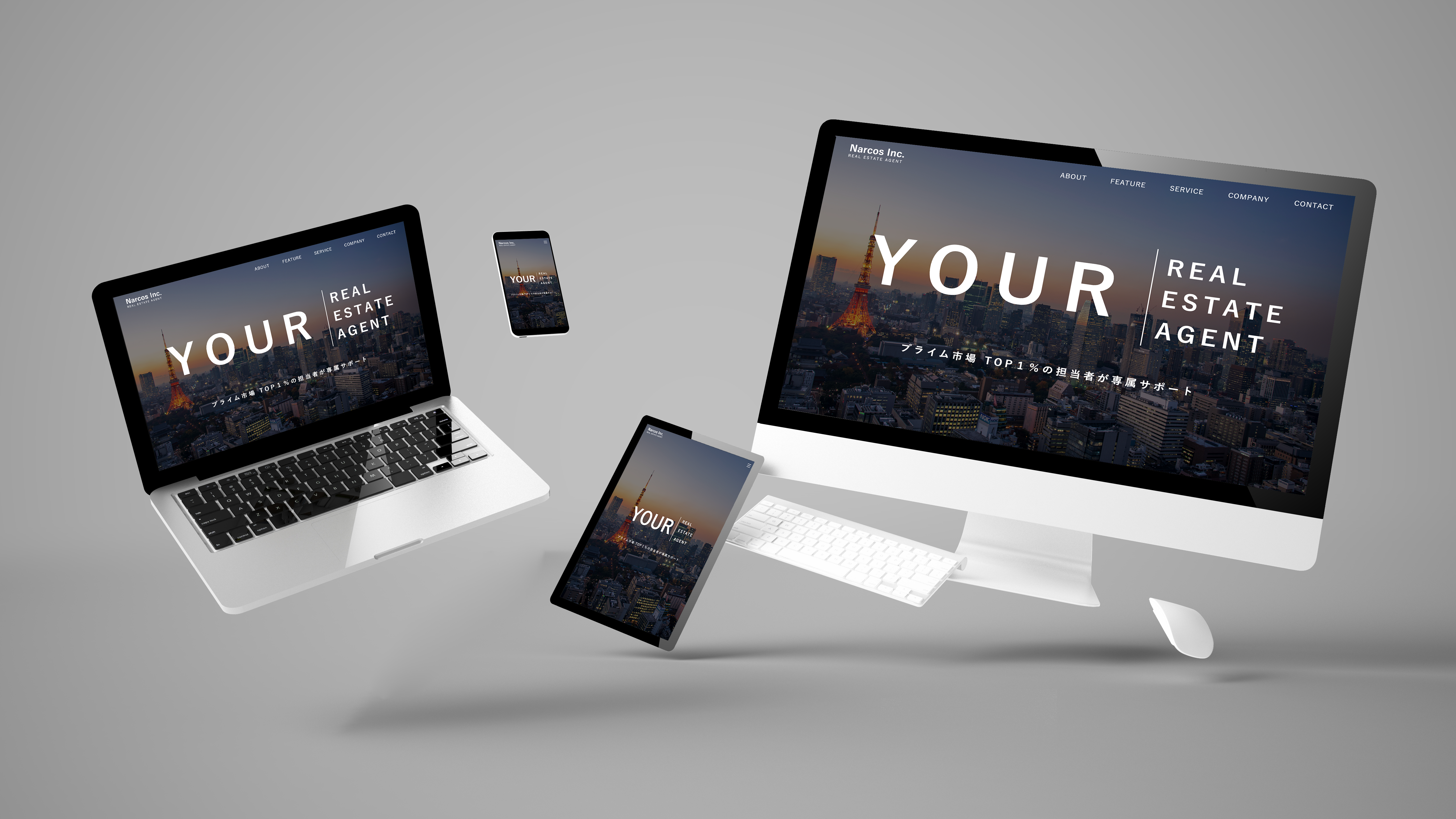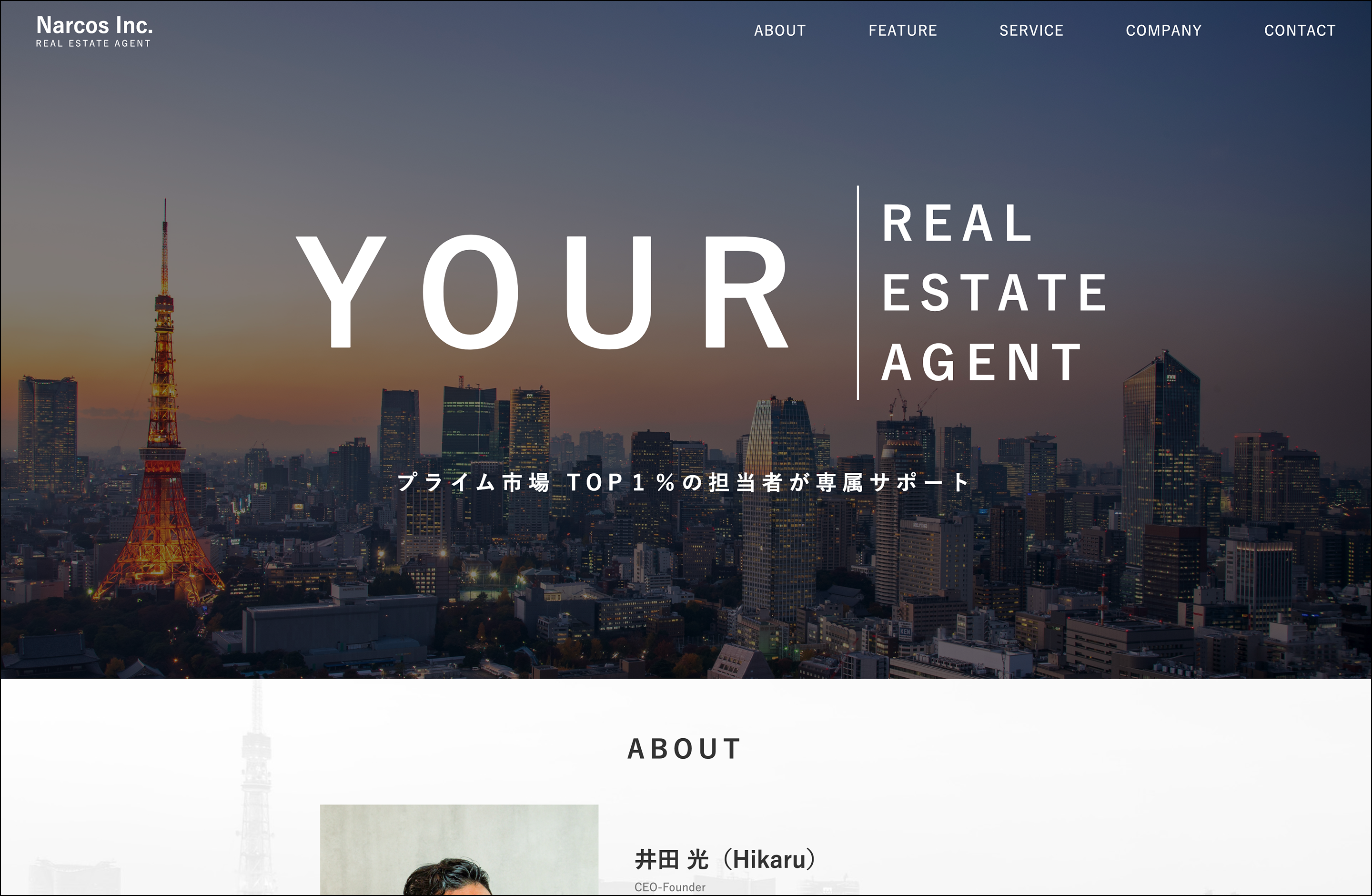 都内の一等地にある物件を連想させるような印象を与える為、ファーストビューには都内の夜景を全面に使用。ベースカラーを白色に使用し、コンテンツの区切りを灰色に指定することで、白を基調とした洗礼されたイメージにしました。